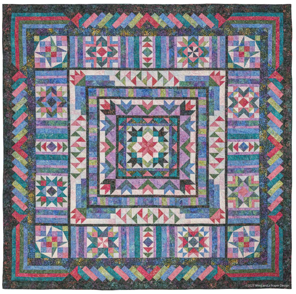 Introducing Windsong from Wing and a Prayer Designs. The quilt measures approximately 108” x 108” and is perfect for any King-sized bed! The neutral tones paired with a few pops of color creates a stunning center medallion with surrounding stars!